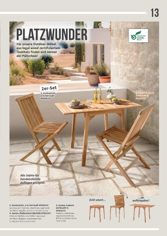 aus massivem Teakholz, naturfarben, legal wood AUFKLAPP‐S